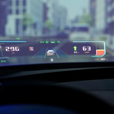 Its interior emphasizes electric and autonomous technology, featuring a spacious, fully digital cabin with adaptive controls and a holographic AI assistant.